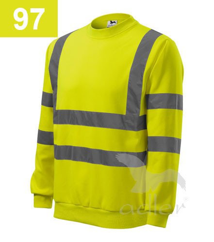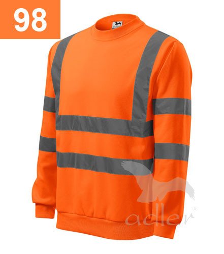 Bluza wykonana w 100% z poliestru w kolorze fluorescencyjnym z rękawami o kulistym kształcie. Wewnętrzna strona bluzy czesana. Dolna lamówka, mankiety oraz dekolt bluzy uszyte z dzianiny ściągaczowej 1/1. Naszyte certyfikowane paski odblaskowe producenta 3M. Odzież certyfikowana zgodnie z międzynarodową normą EN ISO 20 471 2013- odzież ostrzegawcza o wysokiej widoczności do użytku profesjonalnego. Odzież certyfikowana zgodnie z międzynarodową normą EN ISO 13 688 2014 – odzież ochronna. Produkt doskonały pod haft i nadruk.