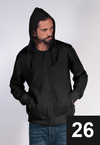 Opis: ciepła, gruba bluza męska; kaptur ze stójką; kieszenie zapinane na zamek; elastyczny ściągacz; materiał wewnątrz szczotkowany