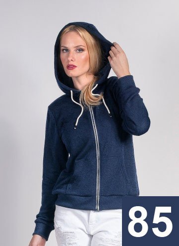 Opis: lekka damska rozpinana bluza z kapturem; dwie kieszenie; dzianina french terry