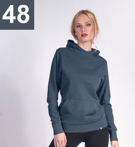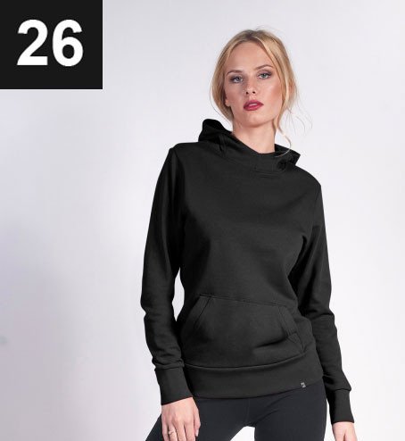 Opis: Bluza damska z kapturem; kaptur ze stójką; kieszeń typu kangurka; dzianina french terry