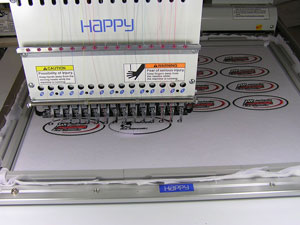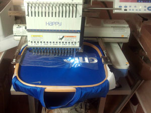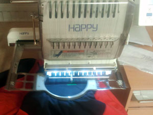 Jednogłowicowa hafciarka japońskiej firmy Happy o dużym polu roboczym, przeznaczona do prac specjalnych i wykonywania krótkich serii rzędu 5-20szt