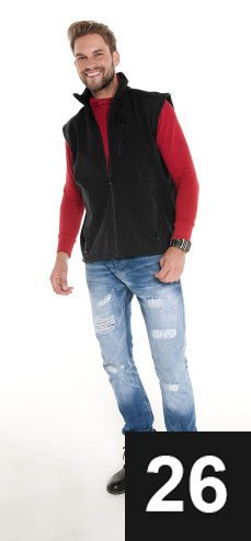 Opis: kamizelka z membraną; materiał typu softshell połączony z polarem; dwie kieszenie boczne i jedna kieszeń na piersi zamykane na zamek; wydłużony tył; wodoodporność: 3000 mm słupa wody; oddychalność: 500 g/m2/24e