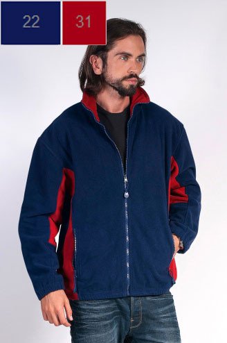Opis: męski ciepły polar, wstawki w kontrastowym kolorze; kieszenie zapinane na zamek; system ściągaczy u dołu wewnątrz; wykończenie antypillingowe